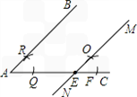 解:如图所示:以A为圆心,任意长为半径画弧,再以相同长度,以E为圆心,画弧,再以RQ长度在EC上以F为圆心,画弧,交点为O,连接OE,即是所求答案.此时MN∥AB.