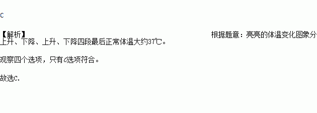 一天,亮亮感冒发烧了,早晨他烧得厉害,吃过药后感冒好多了,中午时亮亮的体温基本正常,但是下午他的体温又开始上升,直到半夜亮亮才感觉身上不那么发烫了.图中能基本反映出亮亮这一天(0~24时)体温的变化情况的是( )