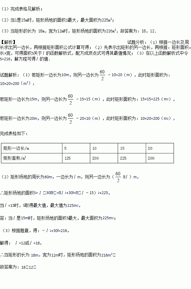 (Ⅱ)设矩形一边长为lm,矩形面积为Sm2,当l是多少时,矩形场地的面积S最大?并求出矩形场地的最大面积;