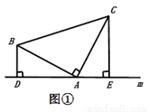 (1)如图①,已知:在△ABC中,∠BAC=90°,AB=AC,直线m经过点A,BD⊥直线m,CE⊥直线m,垂足分别为点D、E.证明:DE=BD+CE.
