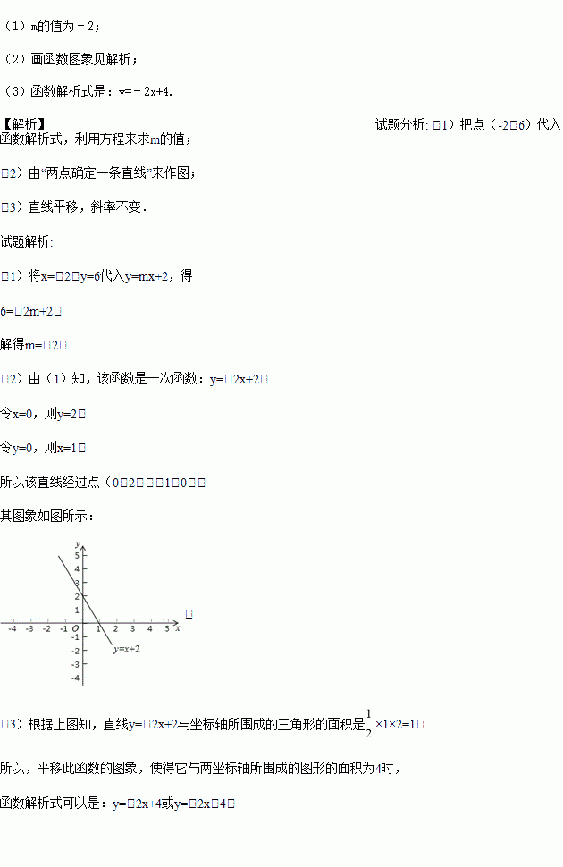 已知关于x的一次函数y=mx+2的图象经过点(﹣2,6).