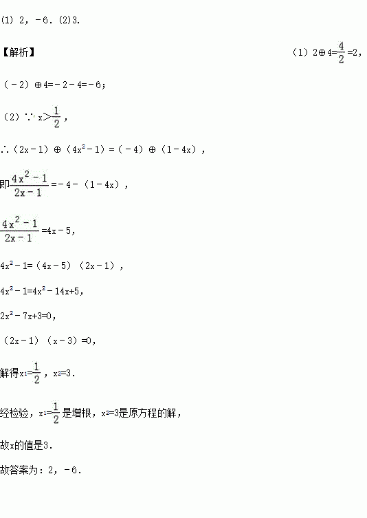 (1)2⊕4= ,(﹣2)⊕4= ;