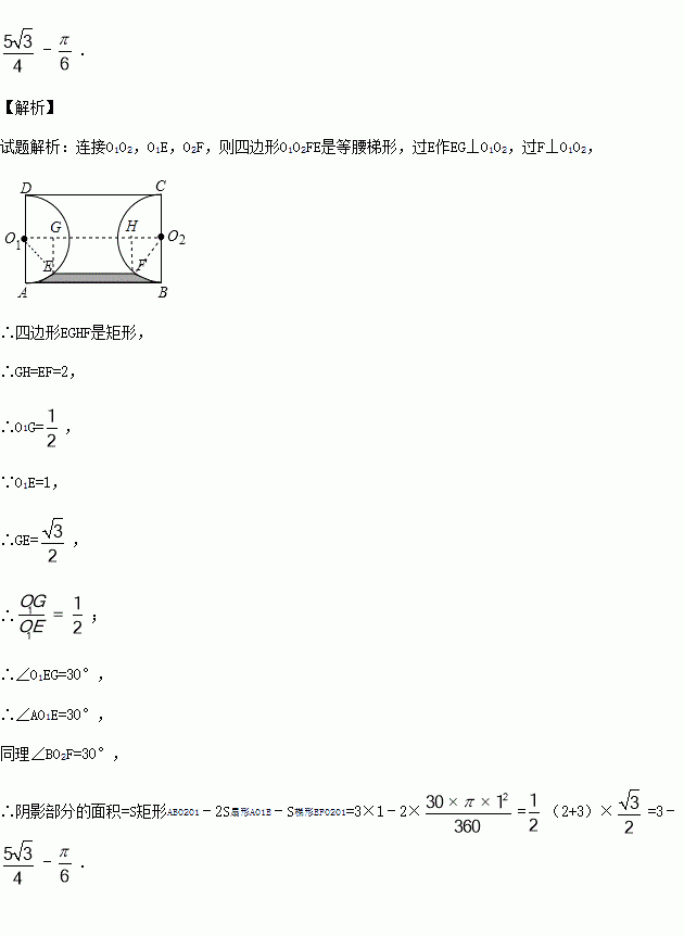 如图,已知矩形ABCD中,AB=3,AD=2,分别以边AD,BC为直径在矩形ABCD的内部作半圆O1和半圆O2,一平行于AB的直线EF与这两个半圆分别交于点E、点F,且EF=2(EF与AB在圆心O1和O2的同侧),则由