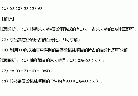 (3)若该校共有学生900人,请你估计该校最喜欢跳绳项目的学生约有多少人?