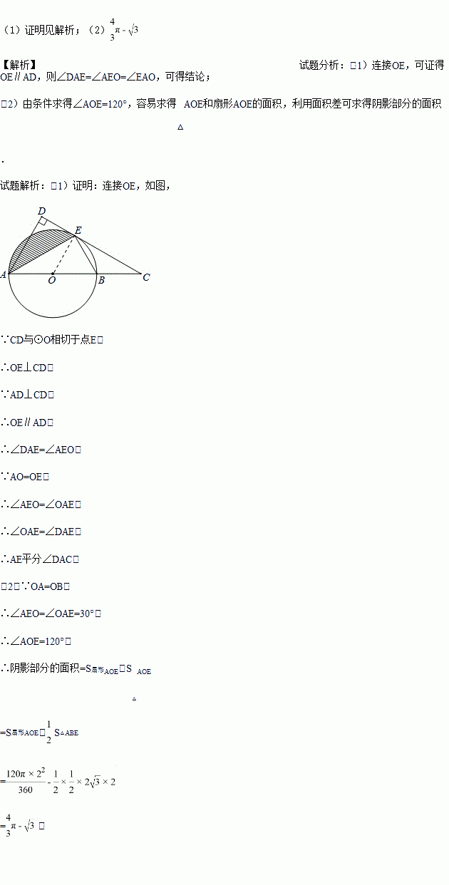 (2)若AB=4,∠ABE=60°,求出图中阴影部分的面积.