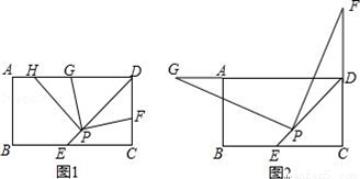 (1)如图1,若点F在CD边上(不与D重合),将∠DPF绕点P逆时针旋转90°后,角的两边PD、PF分别交射线DA于点H、G.