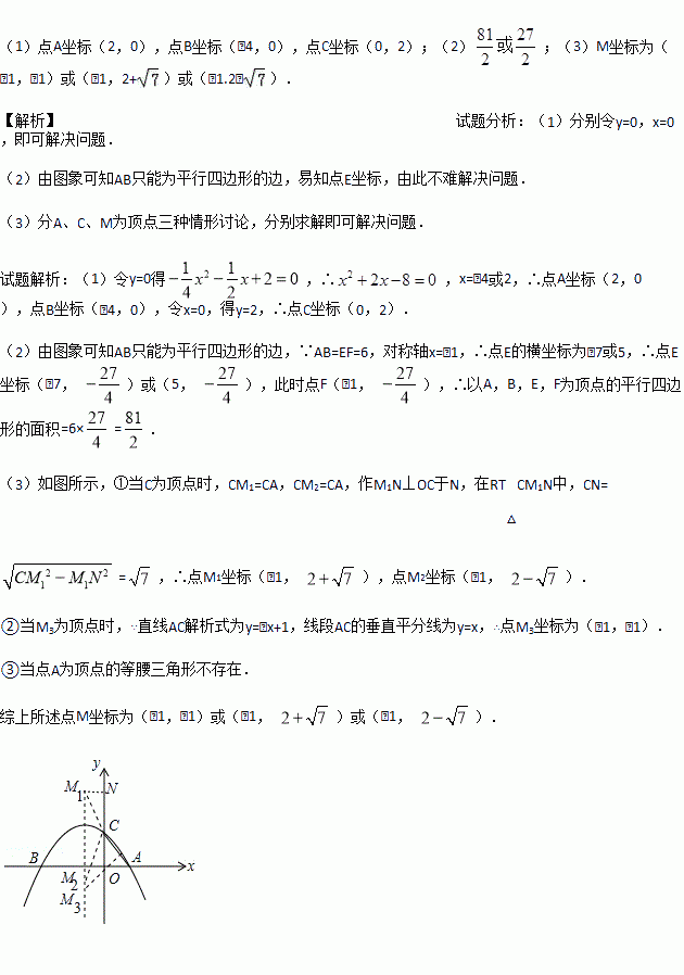 (2)点E是此抛物线上的点,点F是其对称轴上的点,求以A,B,E,F为顶点的平行四边形的面积;