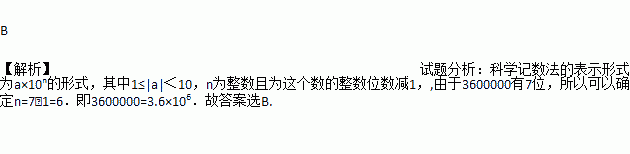 A. 0.36×107 B. 3.6×106 C. 3.6×107 D. 36×105