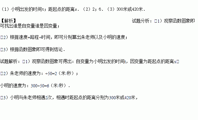 (2)朱老师的速度为 米/秒;小明的速度为 米/秒;