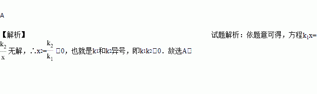 A. k1k2<0 B. k1k2>0 C. k1+k2<0 D. k1+k2>0