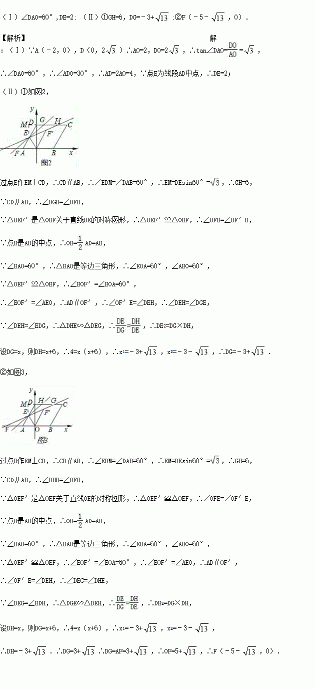 (Ⅰ)如图1,求∠DAO的大小及线段DE的长;