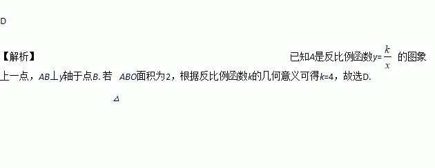 图象上一点,过点A作AB⊥y轴于点B,点P在x轴上,△ABP的面积为2,则K的值为( )