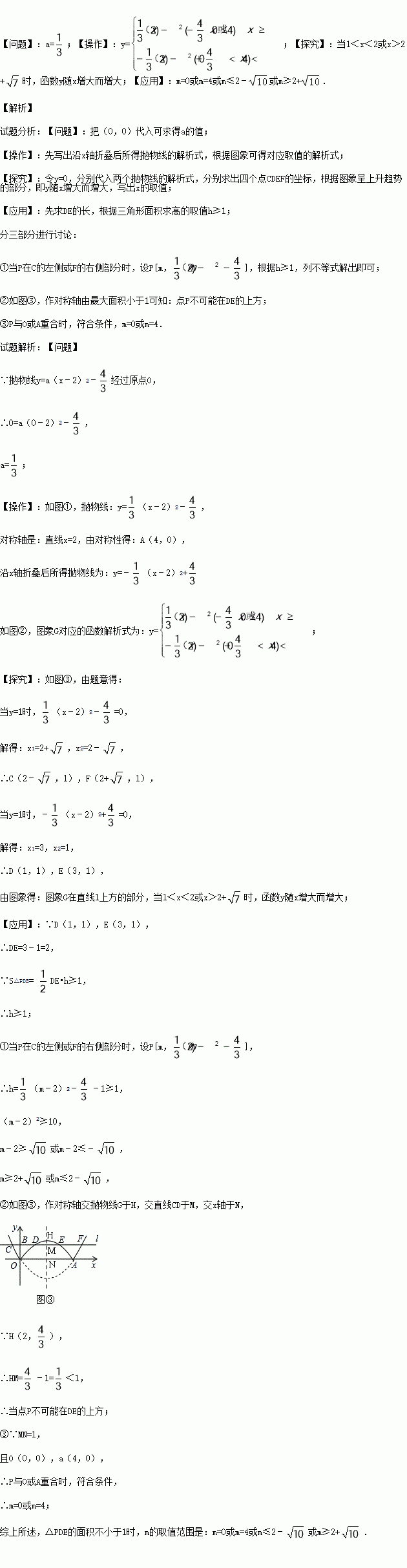 【应用】P是图③中图象G上一点,其横坐标为m,连接PD,PE.直接写出△PDE的面积不小于1时m的取值范围.