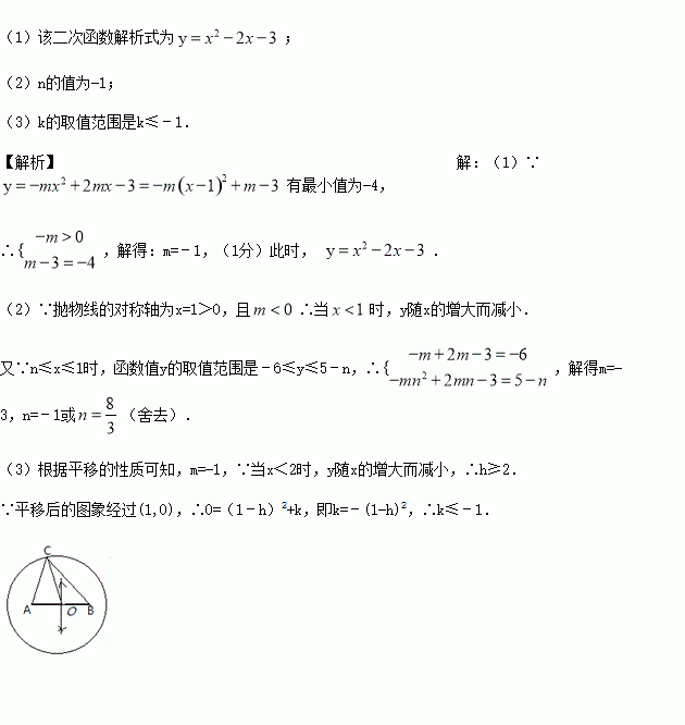 (1)若该二次函数的最小值为-4,求该二次函数解析式;
