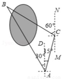 小明同学要测量公园内被湖水隔开的两颗大树A和B之间的距离,他在A处测得大树B在A的北偏西30°方向,他从A处出发向北偏东15°方向走了200米到达C处,测得大树B在C的北偏西60°的方向.