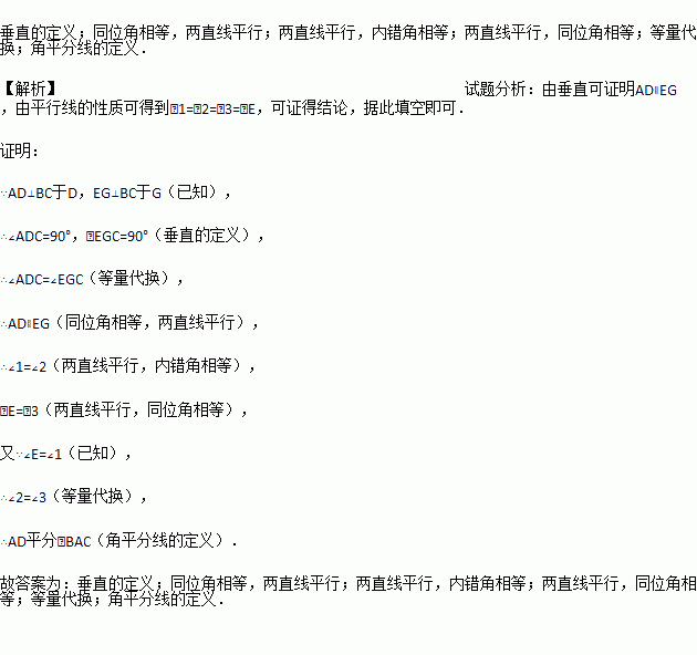 看图填空:已知如图,AD⊥BC于D,EG⊥BC于G,∠E=∠1,