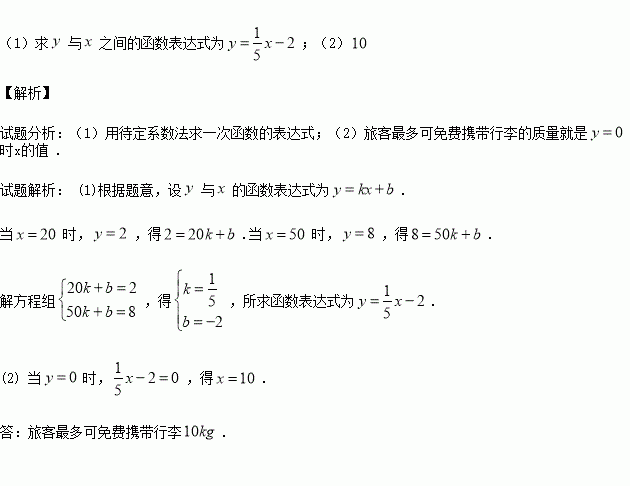 某长途汽车客运公司规定旅客可免费携带一定质量的行李,当行李的质量超过规定时,需付的行李费