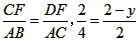 如图,在△ABC中,AC=2,BC=3,AB=4,D是BC边上一点,直线DE∥AC交BC于D,交AB于E,CF∥AB交直线DE于F。