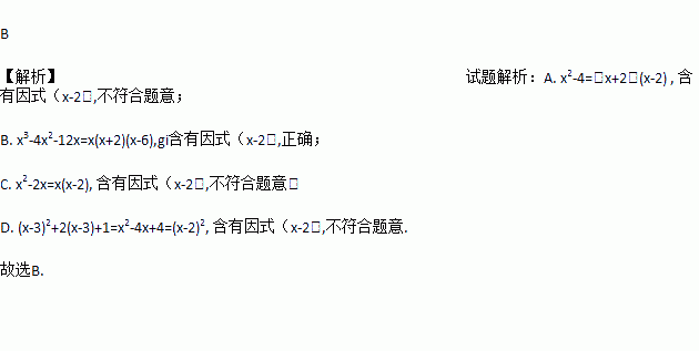 将下列多项式因式分解,结果中不含有因式(x-2)的是( )