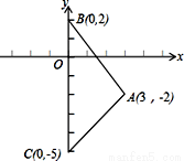 如图,三角形ABC三个项点坐标分别为 A(3,?2)、B(0,2)、C(0,?5),将三角形ABC沿 y 轴正方向平移2个单位,再沿x轴负方向平移 l 个单位,得到三角形A1B1C1.