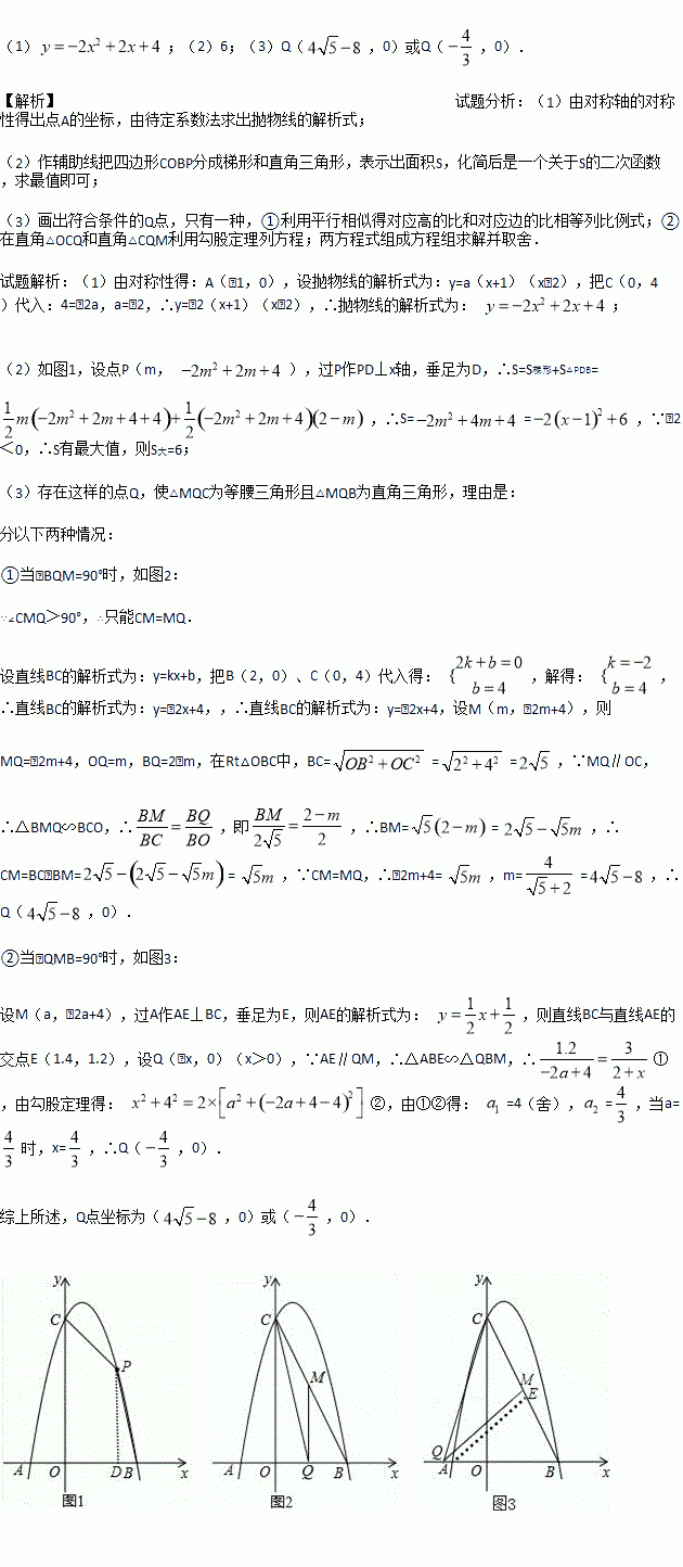 的抛物线经过B(2,0)、C(0,4)两点,抛物线与x轴的另一交点为A