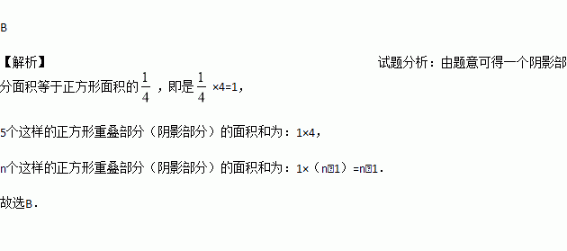 如图,将n个边长都为2的正方形按如图所示摆放,点A1,A2,…An分别是正方形的中心,则这n个正方形重叠部分的面积之和是( )