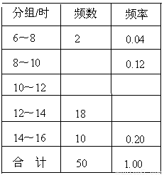 某课外小组为了解本校2014-2015学年八年级700名学生每学期参加社会实践活动的时间,随机对该年级50名学生进行了调查,根据收集的数据绘制了如下的频数分布表和频数分布直方图(各组数据包括最小值,不包括最大值).