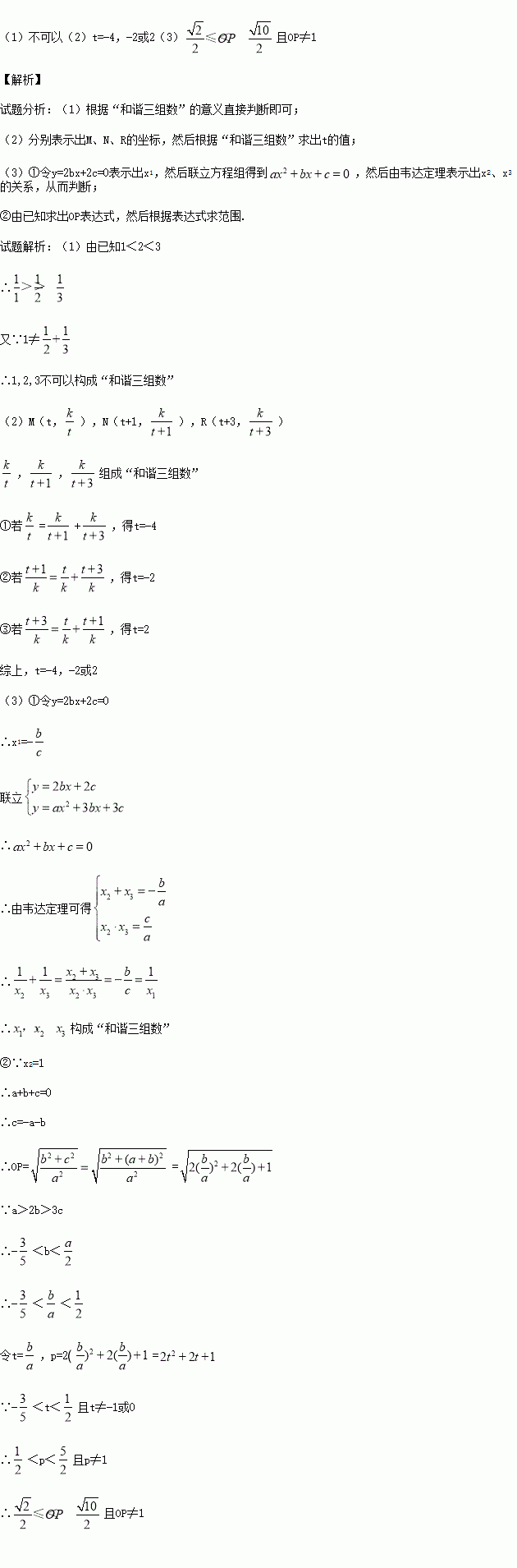 (1)实数1,2,3可以构成“和谐三数组”吗?请说明理由.