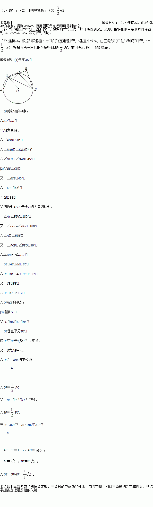 如图,在⊙O的内接四边形ACDB中,AB为直径,AC:BC=1:2,点D为