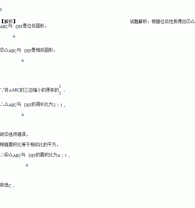 ③△ABC与△DEF的周长比为1:2;④△ABC与△DEF的面积比为4:1.