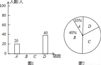 2016年3月,我校举办了以“读城记”为主题的校读书节暨文化艺术节,为了解初中学生更喜欢下列A、B、C、D哪个比赛,从初中学生随机抽取了部分学生进行调查,每个参与调查的学生只选择最喜欢的一个项目,并把调查结果绘制了两幅不完整的统计图,请回答下列问题: