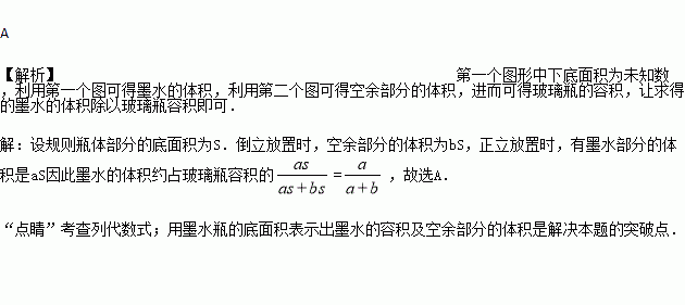 如图,一个瓶身为圆柱体的玻璃瓶内装有高a厘米的墨水,将瓶盖盖好后倒置,墨水水面高为h厘米,则瓶内的墨水的体积约占玻璃瓶容积的( )