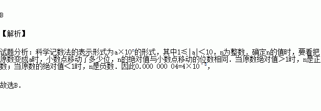 目前,世界上能制造出的最小晶体管的长度只有0.000 000 04m,将0.000 000 04用科学计数法表示为( )