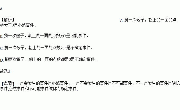 A. 掷一次骰子,朝上的一面的点数大于0.