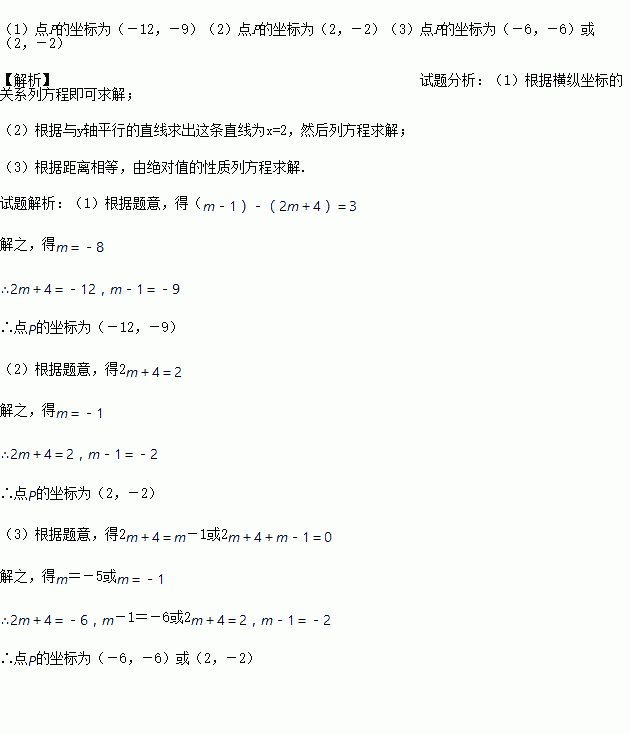 已知点P(2m+4,m-1),请分别根据下列条件,求出点P的坐标.