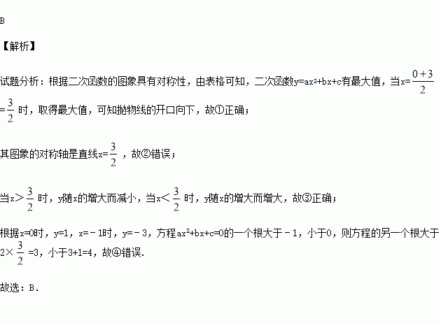 下列结论:①抛物线的开口向下;②其图象的对称轴为