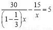 .小丽家去年12月份的水费是15元,而今年5月的水费则是30元.已知小丽家今年5月的用水量比去年12月的用水量多5cm3.求该市今年居民用水的价格.设去年居民用水价格为x元/cm3,根据题意列方程,正确的是( )
