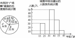 近年来,各地“广场舞”噪音干扰的问题倍受关注,相关人员对本地区15﹣65岁年龄段的市民进行了随机调查,并制作了如图相应的统计图.市民对“广场舞”噪音干扰的态度有以下五种:A.没影响 B.影响不大 C.有影响,建议做无声运动 D.影响很大,建议取缔 E.不关心这个问题