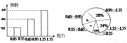 某校共有1000名学生,为了了解他们的视力情况,随机抽查了部分学生的视力,并将调查的数据整理绘制成直方图和扇形图.