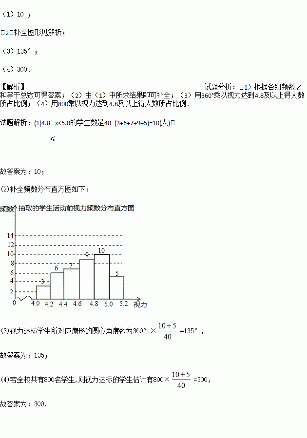 (4)若全校共有800名学生,则视力达标的学生估计有 名.