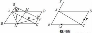 如图,已知?ABCD中,BC=8cm,CD=4cm,∠B=60°,点E从点A出发,沿BA方向匀速运动,速度为1cm/s.过点E作EF⊥CD,垂足是F,连接EF交AD于点M,过M作MN∥AB,MN与BC交于点N,设运动时间为t(s)(0<t<4)