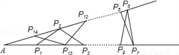 如图钢架中,焊上等长的13根钢条来加固钢架,若AP1=P1P2=P2P3=…=P13P14=P14A,则∠A的度数是( )