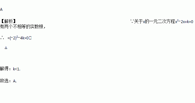 若关于x的一元二次方程x2-2x+k=0有两个不相等的实数根,那么k的取值范围是( )