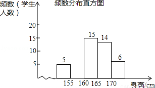 为了解某校九年级学生的身高情况,随机抽取部分学生的身高进行调查,利用所得数据绘成如图统计图表: 频数分布表