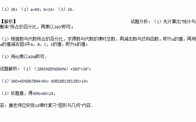 (3)在60课时的总复习中,唐老师应安排多少课时复习“数与代数”内容?