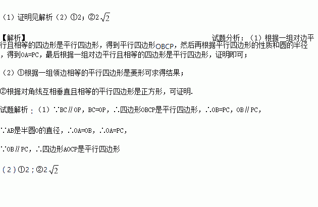 (1)求证:四边形AOCP是平行四边形;