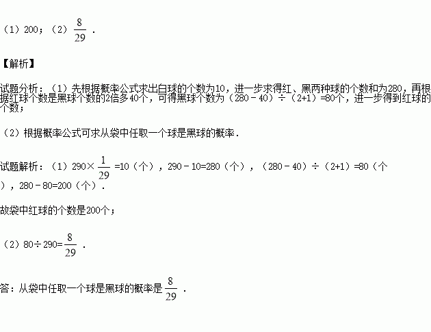 一个口袋中放有290个涂有红、黑、白三种颜色的质地相同的小球.若红球个数是黑球个数的2倍多40个.从袋中任取一个球是白球的概率是