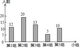 九年级(2)班同学根据兴趣分成五个小组,各小组人数分布如图所示,则在扇形图中第一小组对应的圆心角度数是( )
