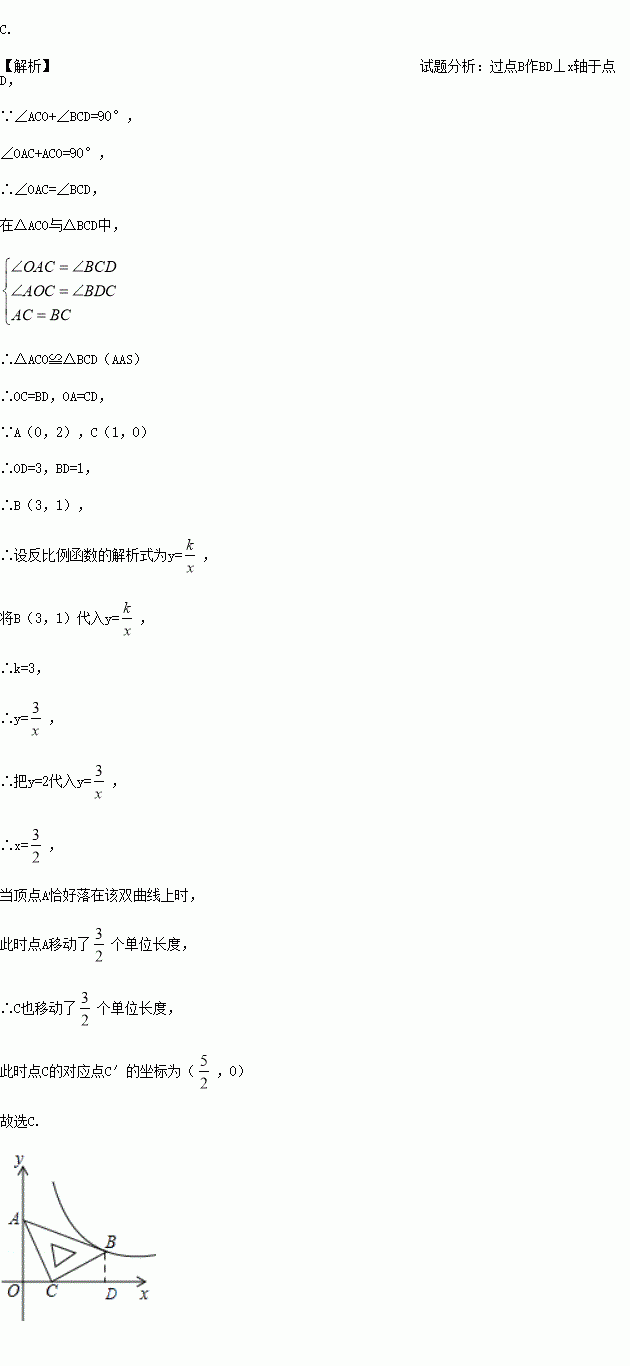 恰好落在第一象限的双曲线上,现将直角三角板沿