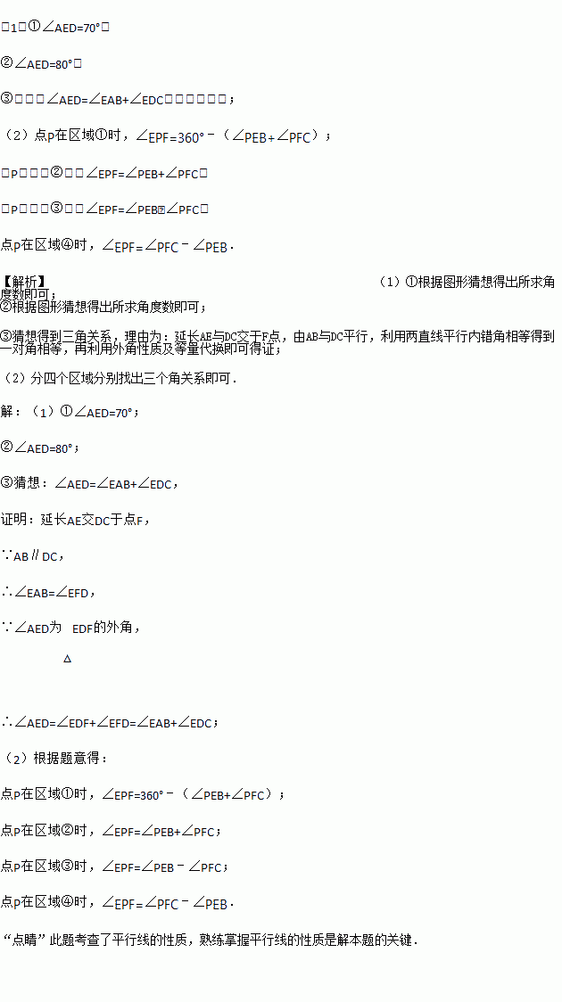 ③在图(1)中∠AED、∠EAB、∠EDC有什么数量关系,并证明你的结论.